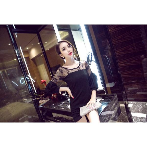 肩周りにレース素材を使用した長袖ミニワンピです。