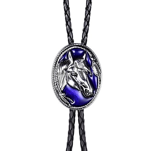 (MASOP)/Accessories/Ties/DIRECT FROM USA/MASOP Western Cowboy Accessories Royal Blue Animal Horse Head Oval Bolo tie