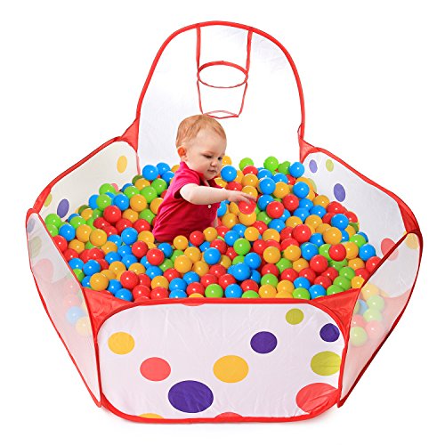 Studio : DG SPORTS Publisher : DG SPORTS Binding : Toy Product Description This Colorful Ball Pit Makes Every Child's Dream Come True. Give Your Kids a Special Place to Have Fun, Relax and Just Enjoy Themselves in A Rainbow of Colors.?? Physical and Mental Stimulation for Kids of all Ages: Giving kids a designated area to play in will help them feel they have a special place of their own to just for them to enjoy. Toddlers will start bringing books, stuffed animals and setting up different toys inside the play pit.Climbing in and out is great for helping kids develop spatial awareness and body awareness. They will get quite a work out swimming through the balls, throwing them and gathering them back up.?? Features Specifications:? Simple to assemble- Pop up out of the bag? Includes 200 Balls - BPA FREE Teach kids colors? Basketball Hoop - Help kids improve coordination? 100% Nontoxic and Washable? Includes Convenient Storage Bag (18 cm diameter)? Portable- Take to the beach or use in the yard? Mesh Sides- Makes supervising simple? Hexagon Shape - Perfect baby playpen? Large unfold size: 47.2 * 23.6 * 29.1 inches (Fits 2 kids age 1-4 years old)? Fun, Educational and Therapeutic all in One Ball Pit: Kids with high energy will find that ball pit can help them unwind and relax. Visual and tactile stimuli from the balls can have a therapeutic effect on all kids, helping them build confidence and strengthen sensory motor skills.A ball pit is also a fun way to teach your kids to clean up after play time. They will have a blast gathering up any stray balls and throwing them back into the kids' ball pit.? Safety first - ALWAYS! They are safe to use educational toy, consistency of thickness and smooth, sharp edges free surface. The balls are soft enough for a baby AND strong enough for a parent.Package Includes: ? Pop Up Play Tent. ? 200 BPA free plastic ball pit balls. ? Mesh bag with zipper to store. 0 |