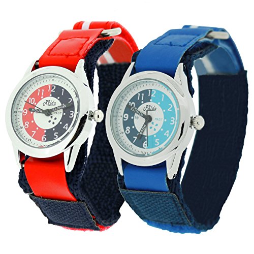 -. Title : 2 X Relda Time Teacher Red / Blue Easy Fasten Boys Kids Watch Gift Set + Award