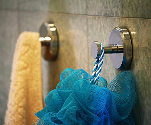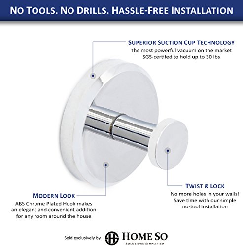 HOME SO Bathroom Hook with Suction Cup Holder - Removable Shower Hanger for Towel, Bath robe, Coat, Loofah (2-Pack)
