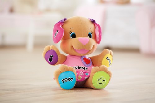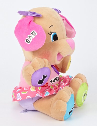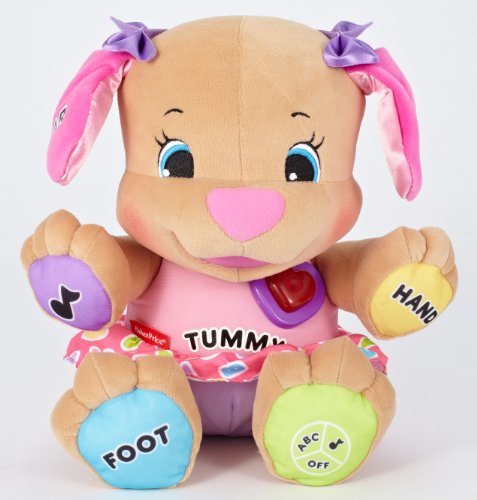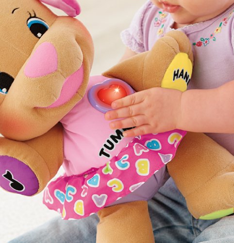 The Fisher-Price Laugh & Learn Love to Play Sis helps to promote baby’s fine motor skills with a light-up heart, paws, tummy, and ear, each responding to baby’s touch while encouraging eye-hand coordination. In addition, baby’s sensory development is promoted through Sis and her soft, plush exterior, light-up heart, and sing-along songs. Academics are explored through lessons on letters, numbers, feelings, parts of the body, and so much more.