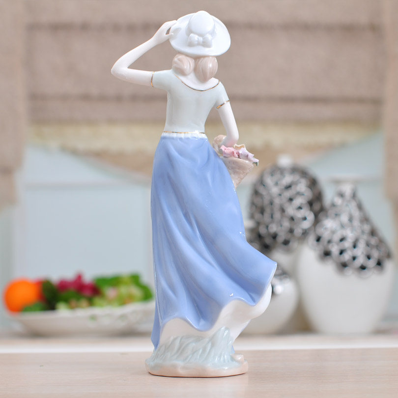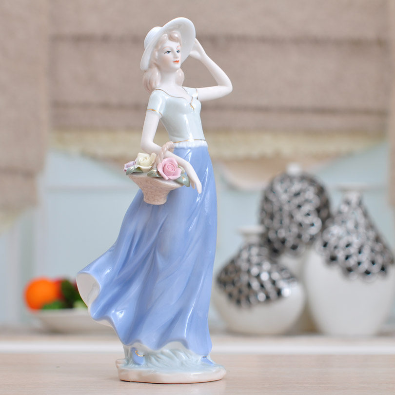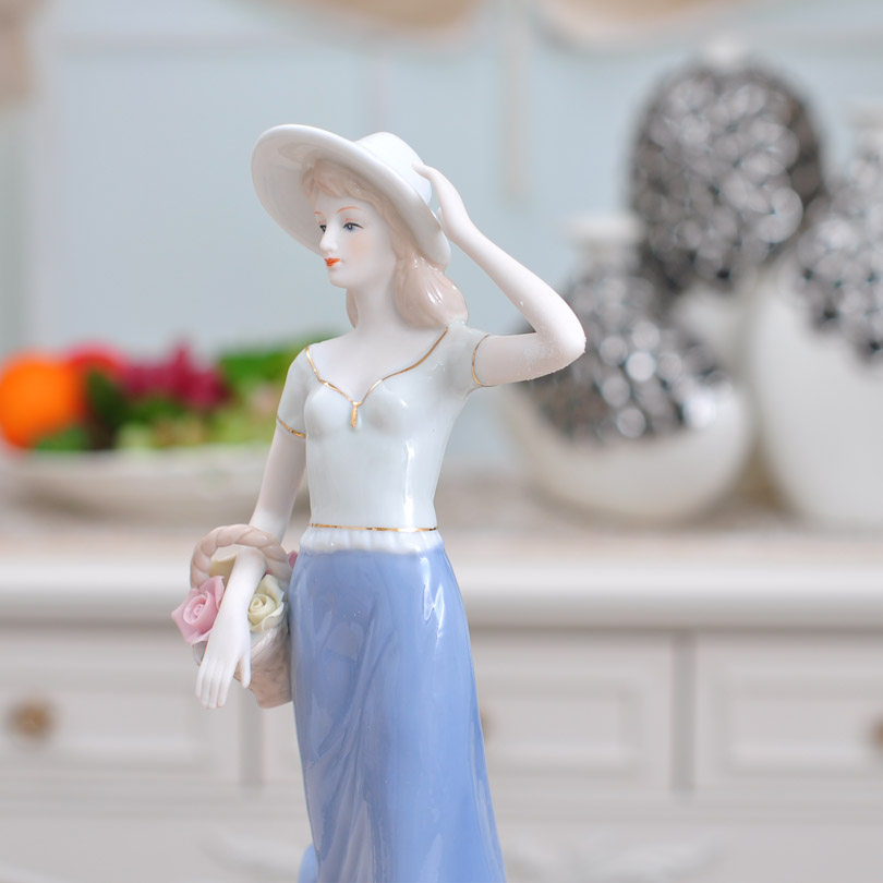 欧式家居装饰品摆设 陶瓷工艺品 雕塑人物客厅摆件 提花女