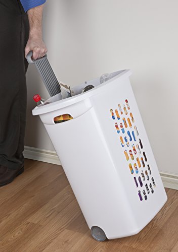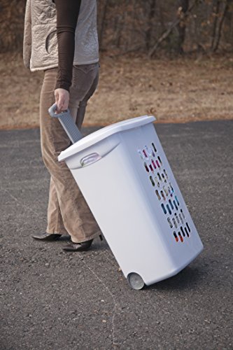 Sterilite 12228003 Ultra Wheeled Hamper, White Lid & Base w/ Titanium Handle & Wheels, 3-Pack