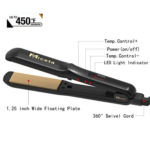 Micsta Professional Hair Straightener, Ionic Flat Iron for Hair Styling, with Keratin Plates for Natural Healthy Silky Hair, Digital Straightening Irons, Heats Up...