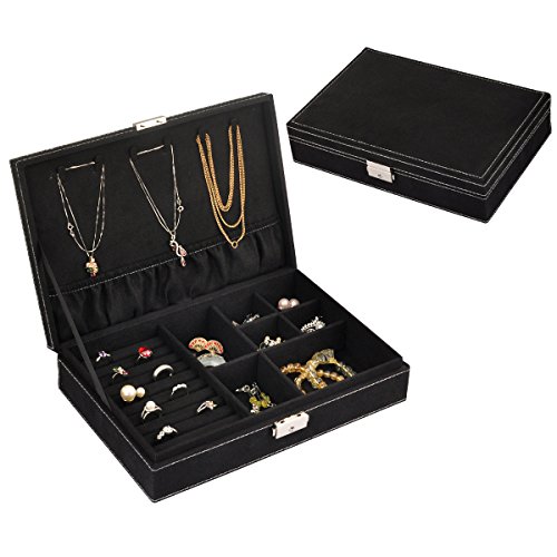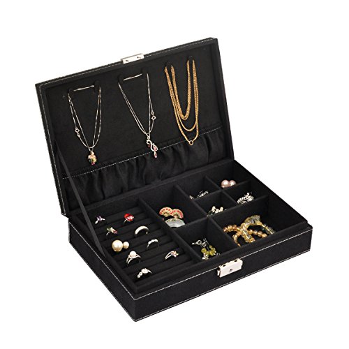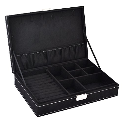 Jewelry Box Organizer Display Storage Case With Lock,Holder for Earring Ring Necklace Bracelet (Black)