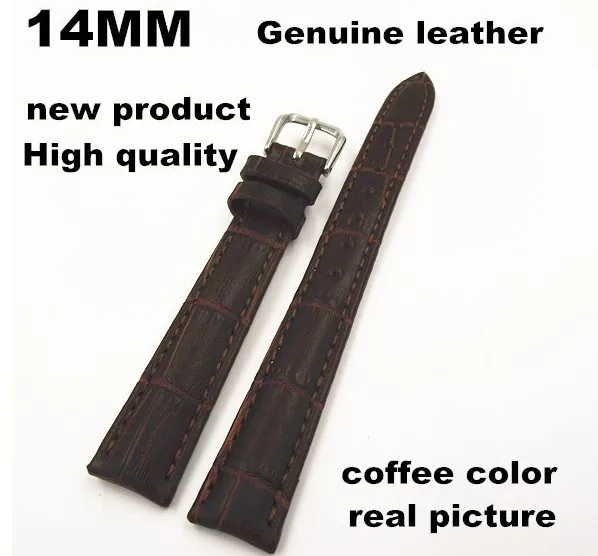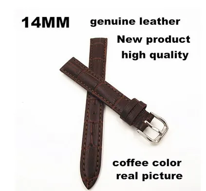 새로운 도착-소매 1 개 고품질 14 미리메터 정품 소 가죽 시계 밴드 시계 스트랩 커피 색상