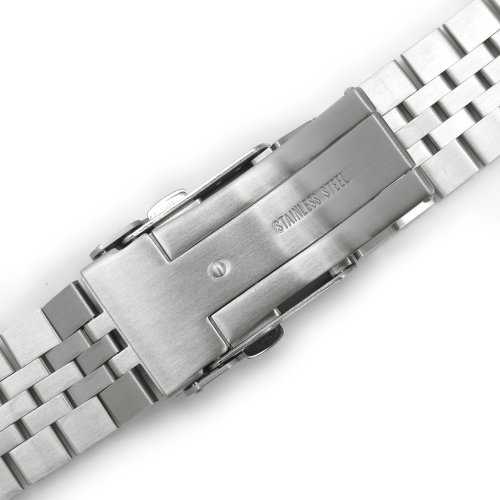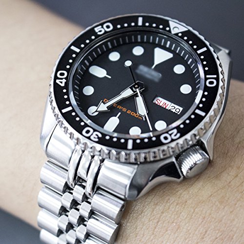 Studio : Taikonaut Publisher : Taikonaut Binding : Watch Product Description Item no. : SS221803B020 Lug width/Buckle (mm) : 22/18 Length (mm) : 185mm Min.length after adjusted : 115mm Buckle : 316L Stainless Steel Double Flip-Lock Diver Clasp Thickness (mm) : 3.60mm Net Weight (gram) : 81gram Finish/Spring bar dia. : Brushed Polished/2.5mm (spring bar included) Lug end style : Curved End Adjustment type : Screw type 8 adjustment links Material : 316L Stainless Steel, Solid Super Jubilee Design to fit Seiko Divers SKX007 / SKX009 / SKX011 0
