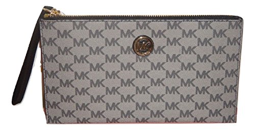Michael Kors Women Fulton Mk Signature Large Zip Clutch Wristlet Wallet Black Gray