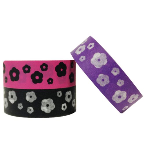 Wrapables Go Happy Floral Washi Masking Tape, 10M by 15mm, Set of 3