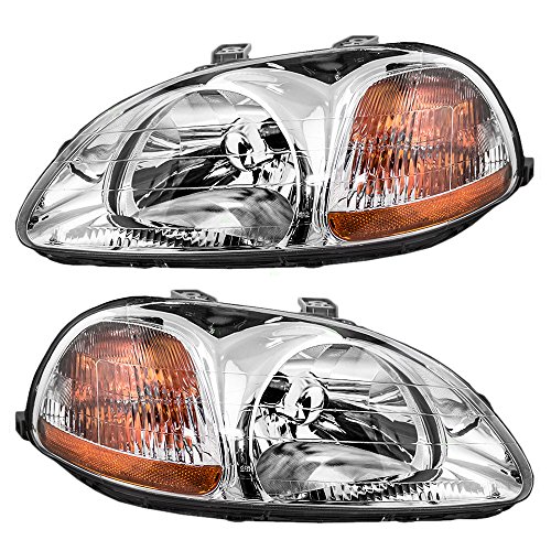 Driver and Passenger Headlights Headlamps Replacement for Honda 33151-S01-305 33101-S01-305