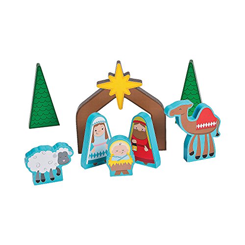 -. Feature : Reenact the Nativity story with these durable wooden figures / Interactive Christmas decoration / Set includes 8 pieces - Mary, Joseph, Baby Jesus, Creche, Sheep, Camel and Trees / Size: 2 1/4" - 7 1/2" x 3/4" x 3 1/4" - 8"