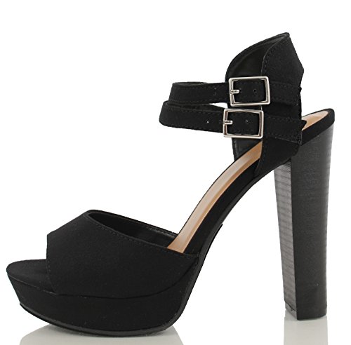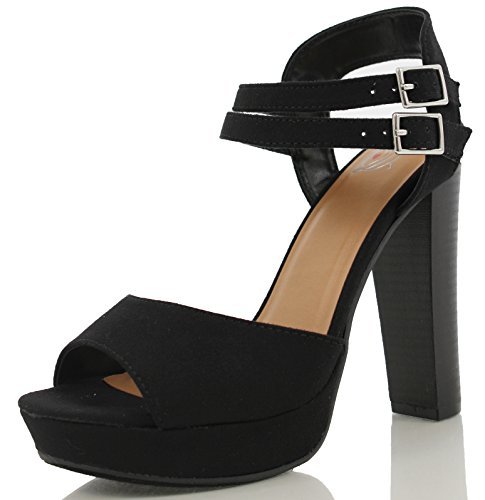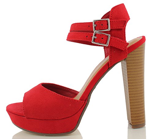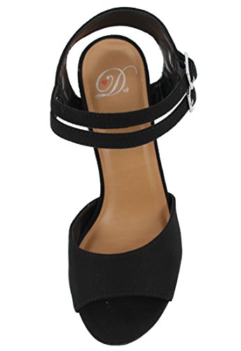 Delicious Women's Learn Faux Suede Peep Toe Wide Strap Double Ankle Strap High Heel