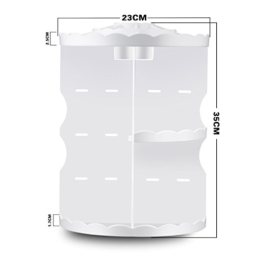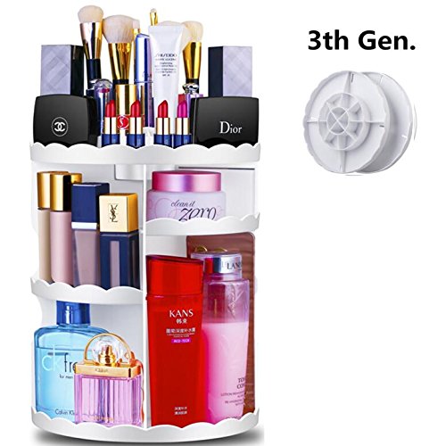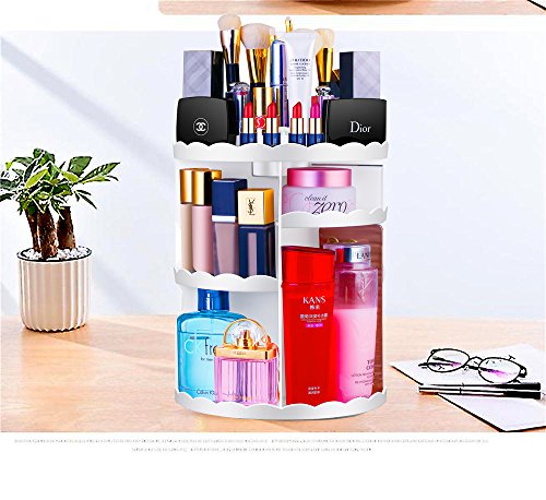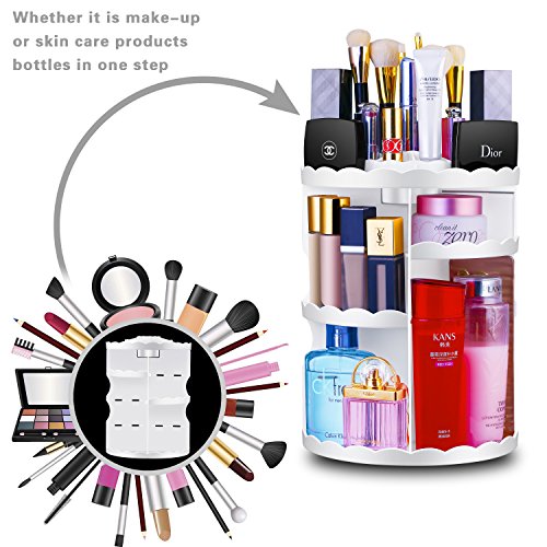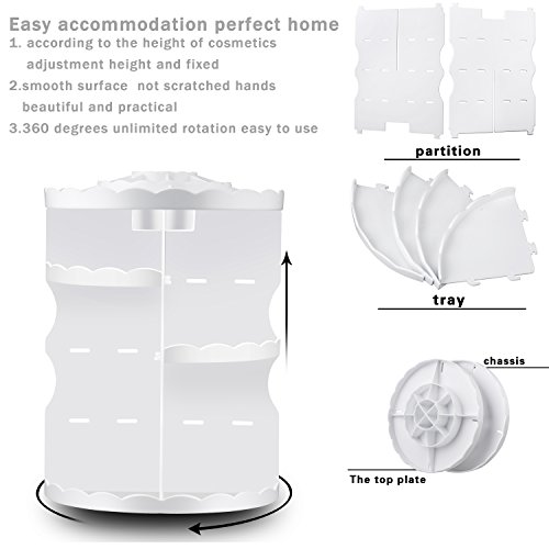 Maxkim 360-Degree Rotating Makeup Organizer, Adjustable Multi-Function Cosmetic Storage Unit, Compact Size with Large Capacity, Fits Different Types of Cosmetics and Accessories, White