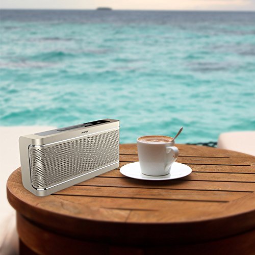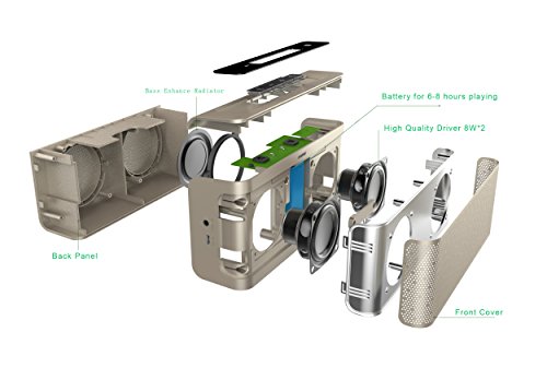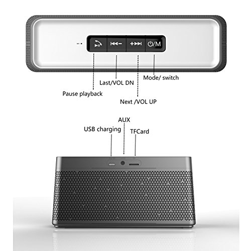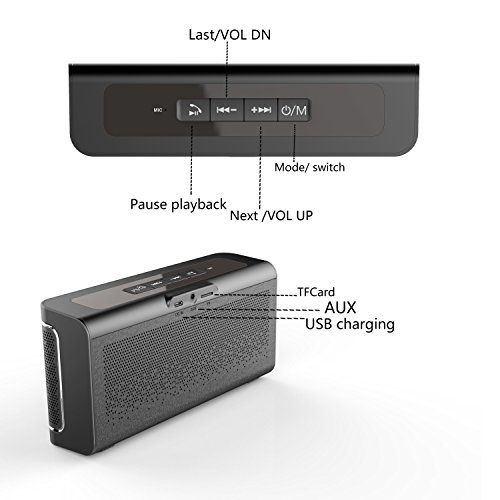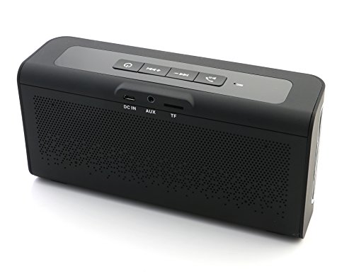 -. Feature : Portable Bluetooth speaker with 33 feet wireless range for streaming music, podcasts, and more from your compatible Bluetooth-enabled device. Good for desktop audio system, also for outdoor party, outgoing, beach side, BBQ music etc. Passive Radiator deliver rich heavy bass. / 2 internal 16-watt speakers and size 2 inches full-range drivers for high-quality sound; provides rich bass without distortion, even at highest volume. / 3.5mm aux in jack for connecting non-Bluetooth audio devices, with playing mode: Bluetooth, Micro SD card MP3 player and AUX audio in. Read manual before use for easy set up! / Rechargeable battery allows for up to 6-8 hours of playtime on a full charge (Playtime varies by volume level and audio content); small and lightweight for take-anywhere convenience. / Bluetooth Version 4.0 Technology: Compatible with all Bluetooth-enabled devices. Instantly connect to your smart phones or tablet from up to 33 feet away. Sport 4 reconnects automatically to the last device used. Built-in MIC for hands-free calls.
