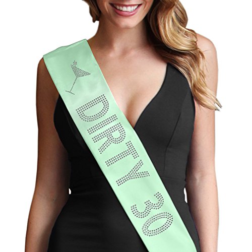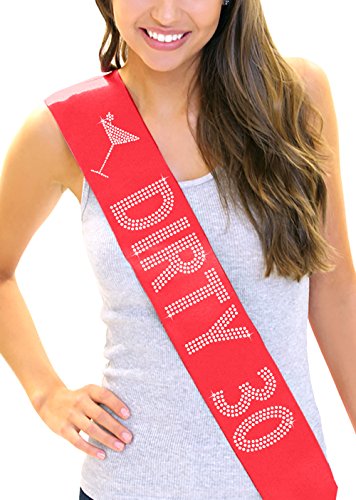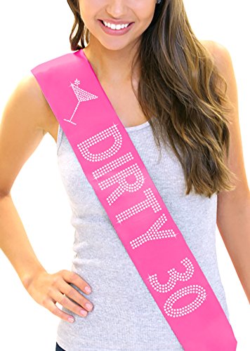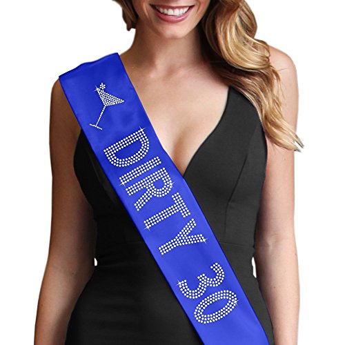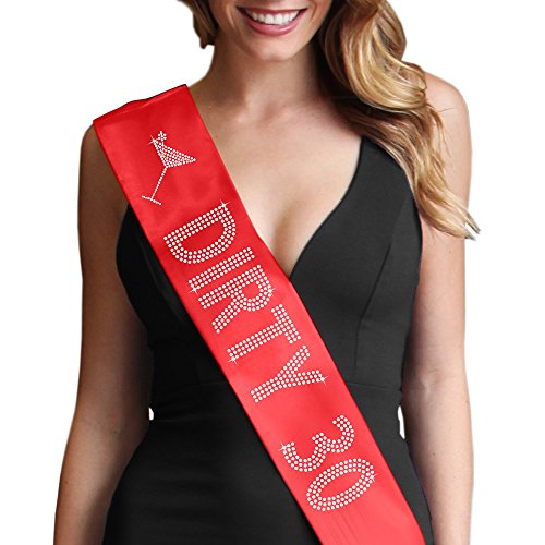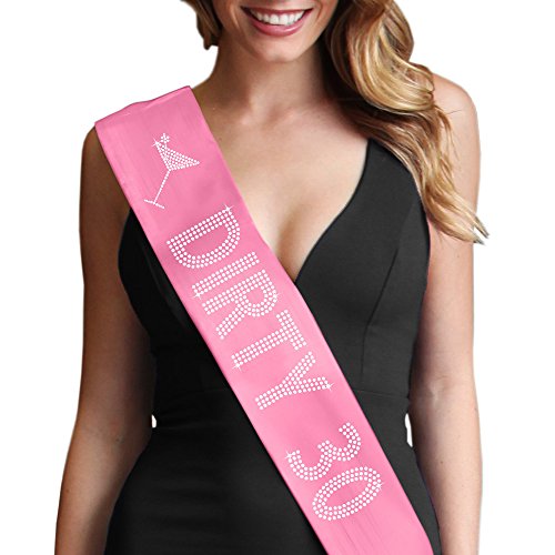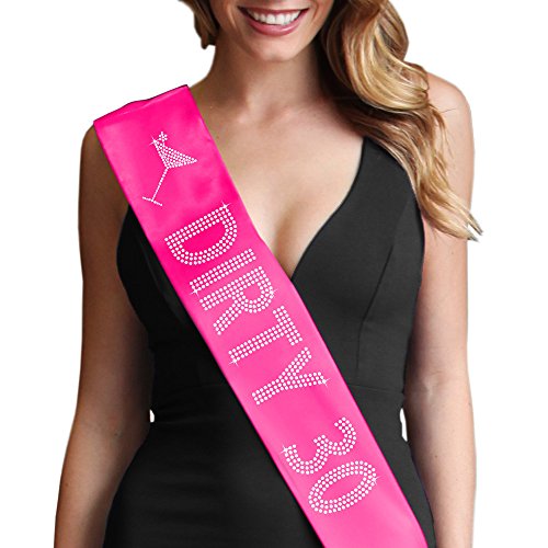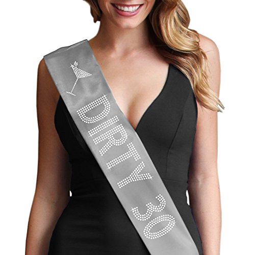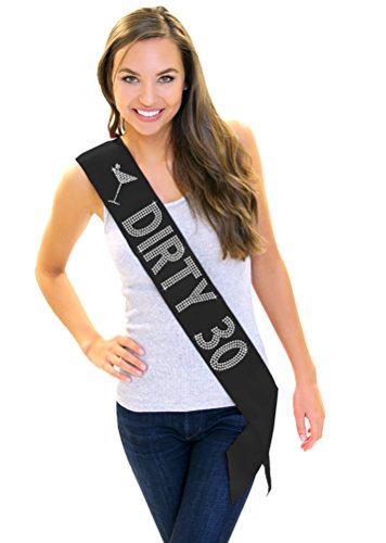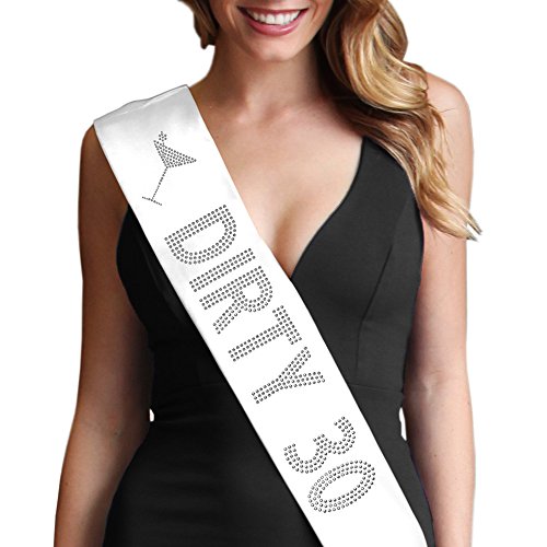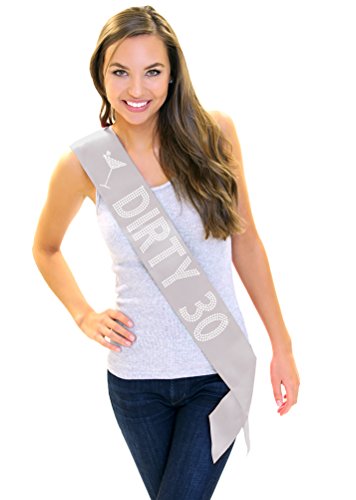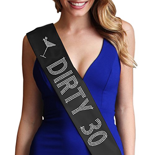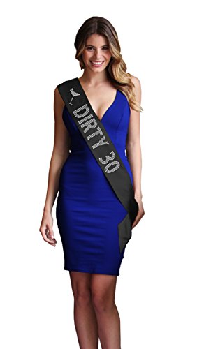 | Dirty 30 Women's Rhinestone Sash 30th Birthday Decorations by RhinestoneSash.com |