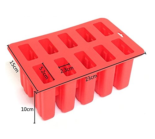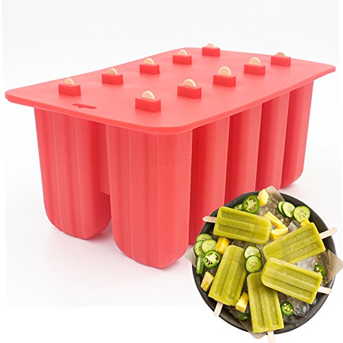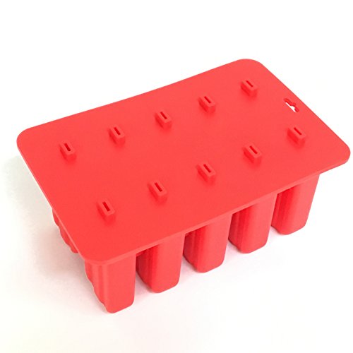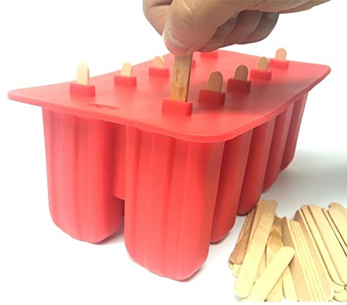 Astra Gourmet 10-Cavity Slicone Frozen Ice Pop Maker with 50 Wooden Sticks for Toddlers, Kids and Adults - BPA Free(Red)