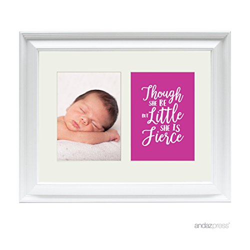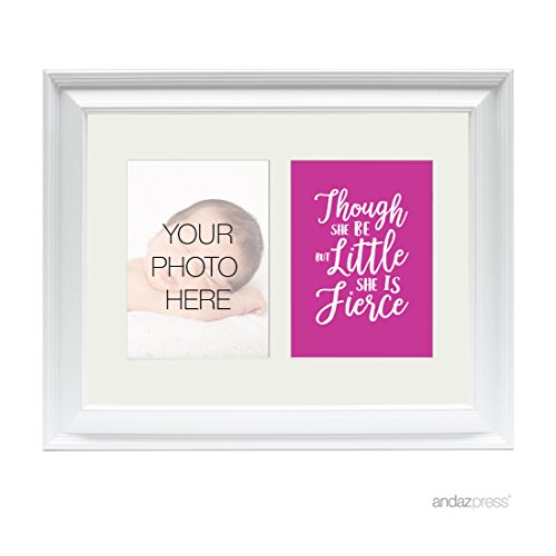 Andaz Press Double White 5x7-inch Photo Frame, And Though She Be But Little She is Fierce, 1-Pack, Girls Nursery Picture Gift Wall Art