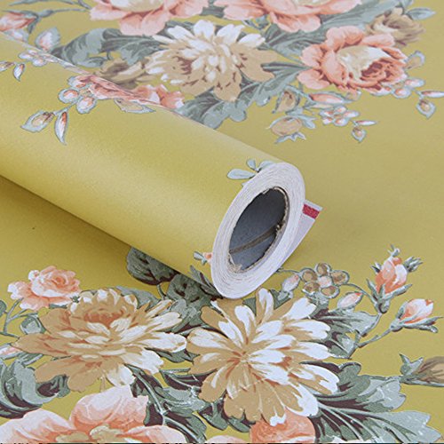 -. Title : SimpleLife4U Vintage Peony Floral Contact Paper Dark Yellow Peel & Stick Shelf Liner Dresser Drawer Sticker 17.7 Inch By 9.8 Feet