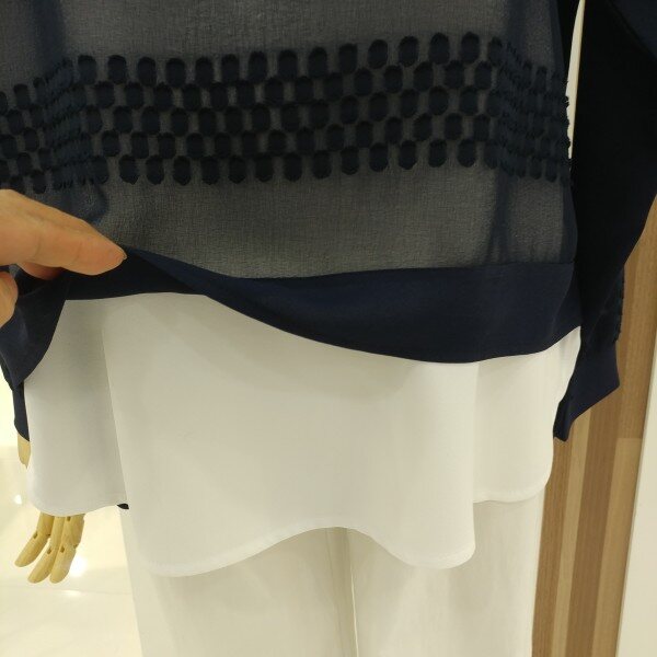 H라인의 루즈핏과 소매와 전면의 레이스배색이 포인트가되어 여성스럽고 사랑스러운 분위기를 연출해드립니다