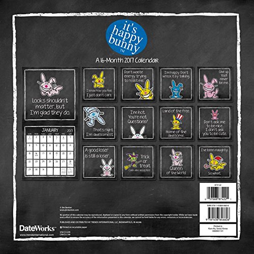 -. Title : It's Happy Bunny - 2017 Calendar 12 x 12in