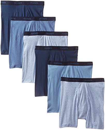 -. Binding : Apparel -. Brand : Hanes -. Department : mens -. Feature : Ultra soft, breathable cotton knit with a fully functional fly / Exposed elastic comfort flex waistband moves with you / Sleek support of a brief, with the free-moving ease of boxers, smooth flat-seamed leg / Actual colors vary by package / 76926v -. Label : Hanes Men's Underwear -. Manufacturer : Hanes Men's Underwear -. ProductGroup : Apparel -. ProductTypeName : UNDERWEAR -. Publisher : Hanes Men's Underwear -. Studio : Hanes Men's Underwear -. Title : Hanes Men's Classics Dyed Boxer Brief Bonus Pack (Pack of 6)