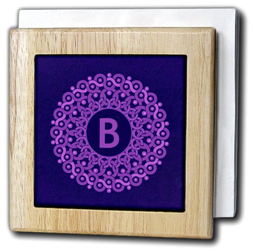 3dRose nh_32190_1 Monogram B lilac and rich purple mandala on deep royal purple muted grunge damask Wall Art, Natural