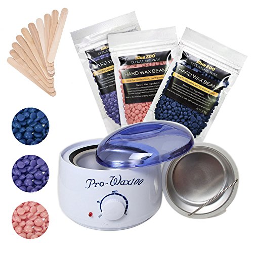 Depilatory Wax Kit: one electric wax warmer, 3 pack of 100g wax solid beans(Rose, Lavender, Chamomile) and 10 applicator sticks