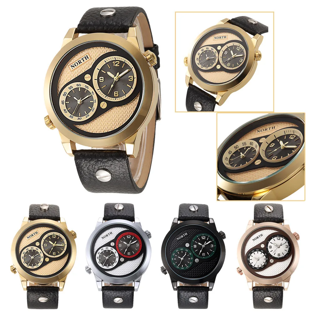 상품 내용 2016 최신 높은 품질의 시계 선물 럭셔리 브랜드 북미 더블 운동 석영 손목 시계 가죽 시계 유명한 디자이너 reloj 특징: