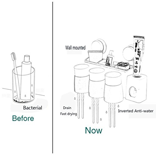 - 【AUTOMATIC】 Automatic dispenser with vacuum pump squeeze out certain amount of toothpaste you need. No Waste, more Hygienic .Toothbrush from air pollution, will not mold.