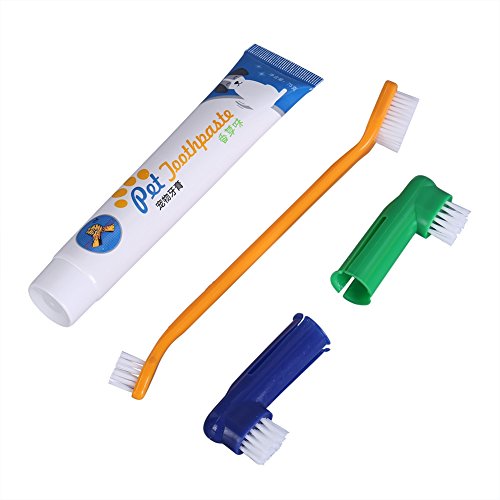 -. Binding : Misc. -. Brand : Patgoal -. EAN : 3792137077976 -. Feature : Improves the dental hygiene in dogs mouth and keep his breath smelling clean and fresh / Toothbrushes for easy reach to all of your pet's teeth! Bonus: set of 2 finger-brushes! / The Double-Sided Toothbrush has a small and large toothbrush head for those hard to reach spots! / Great to use to brush any dog, puppy, cat 's teeth; Helps to reduce plaque and tartar buildup / Package includes: 1*toothpaste+1*toothbrush+2*replacement brush heads(color random) -. Label : Patgoal -. Manufacturer : Patgoal -. PackageQuantity : 1 -. ProductGroup : Pet Products -. ProductTypeName : PET_SUPPLIES -. Publisher : Patgoal -. Studio : Patgoal -. Title : Patgoal Pet Dual-headed Brushes Dog Puppy Toothbrush and Toothpaste with 2 Brush Head