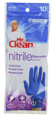 Mr. Clean 243058 Disposable Nitrile Latex-free Gloves, 10 Count