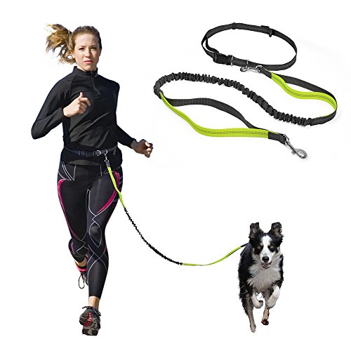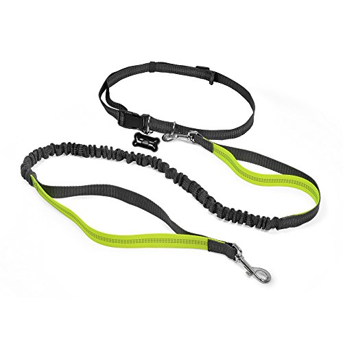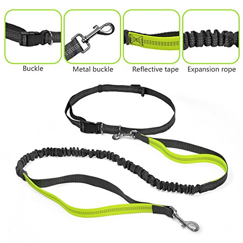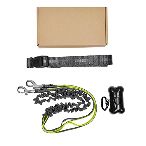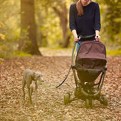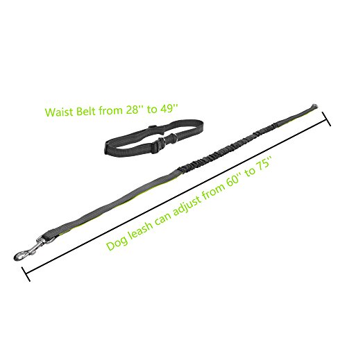 Hands Free Design: With waist band, enjoy your running without feeling restrained by your dog Double Handles: Giving more freedom for your dogs when using the waist handle, giving more control when using the collar handle Strong Bungee Band: Reduce back strain and the risk of getting hurt Night Reflective Band: Providing more safety desgin for you and your dog at night Fit for All Size Dogs: Fit for up to 150 lb dogs with no worry