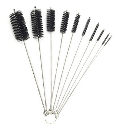 - 10 different size tube brush attached on a keychain. Not only does it keep them all together but it makes it a lot easier to find the size that's right for the job.