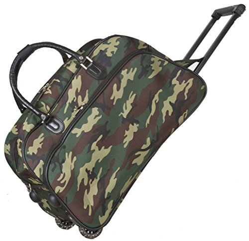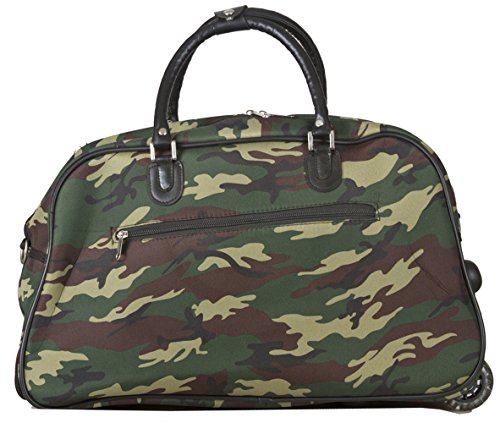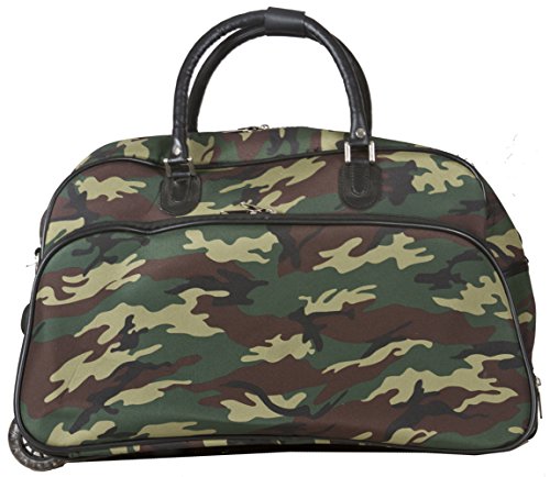 Product Description Stand out in style with this designer print rolling duffle! This piece of lightweight luggage is great for jetsetters and can be used for a quick, close by staycation or for a weekend excursion to your favorite retreat. It's chic and fashionable design makes it a perfect choice for transporting gear for dance teams and cheer squads too! Easily glide through the TSA security checkpoint on inline skate wheels with your rolling suitcase for stress-free and efficient, stylish transport or you can carry your cute duffle by its included durable, detachable shoulder strap. Fully lined with nylon, keeping it clean is easy! Never lose your boarding pass, ID, or other smaller items with two front zippered pockets on this security checkpoint friendly bag. 0