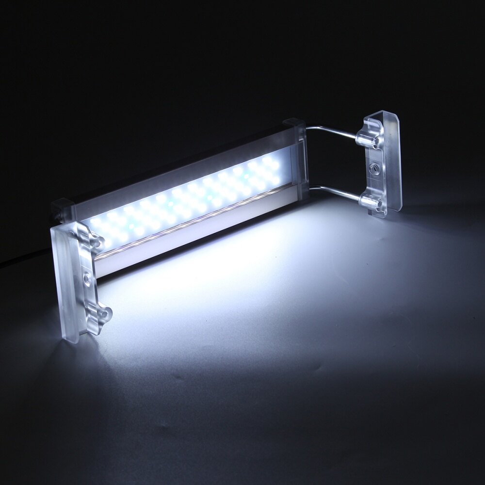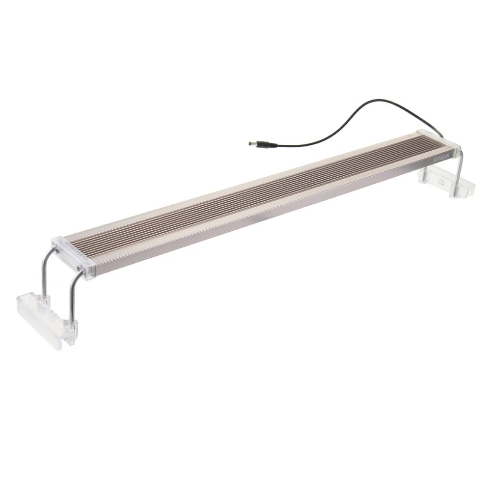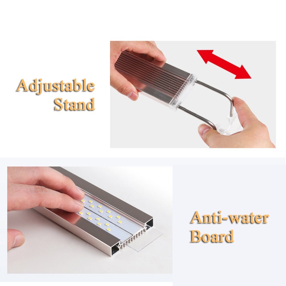 Features 1. 7500k natural ecological light, promote the growth of aquatic plants. 2. Adjustable stainless steel bracket for different size of tanks. 3. 120°best light angle, can best effectively promote the photosynthesis. 4. Aluminum alloy shell with heat dissipation function for long time using. 5. Built-in anti-water board to prevent water vapor damaging the lamp beads. 6. Suitable for tank which thickness is less than 12mm.