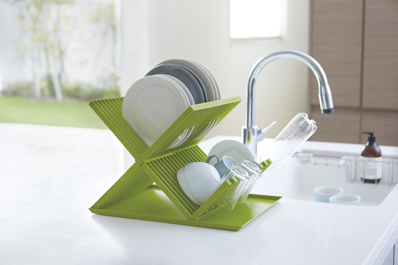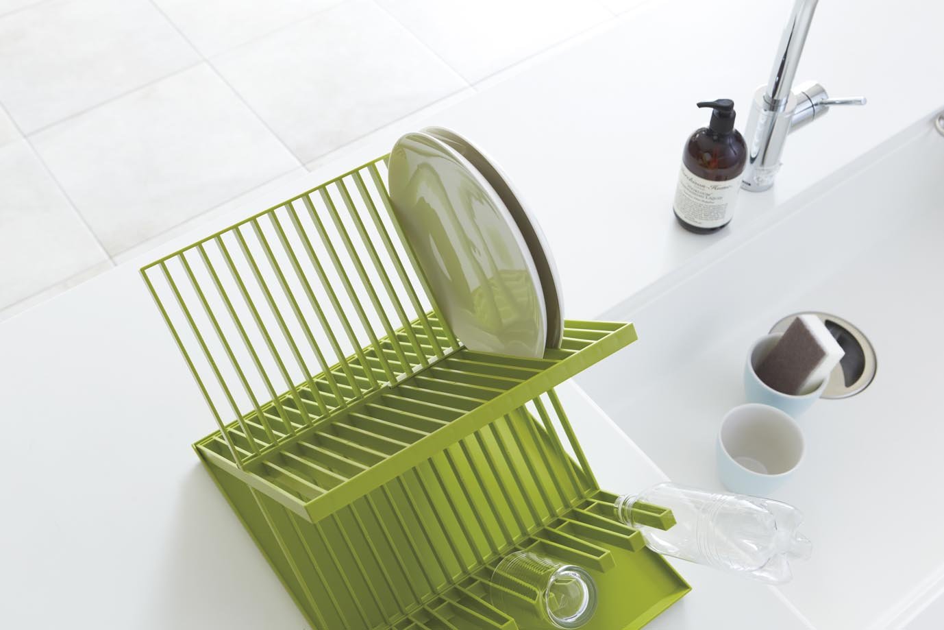 Drain from the dish to the glass, mug, plastic bottle all at once!