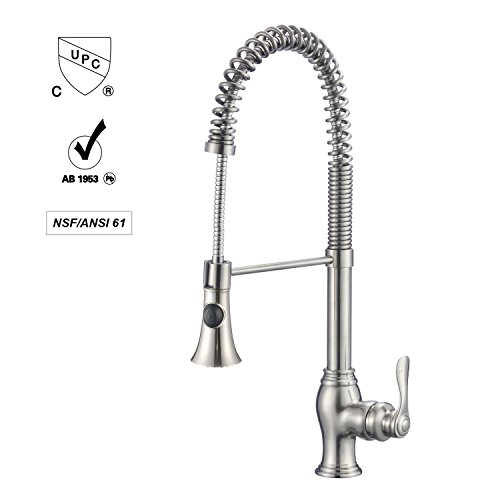 Ollieroo Faucet 22" Lead-free Brass Spiral Spring Single Handle Kitchen Sink Faucets With Pull Down Sprayer Brushed Nickel