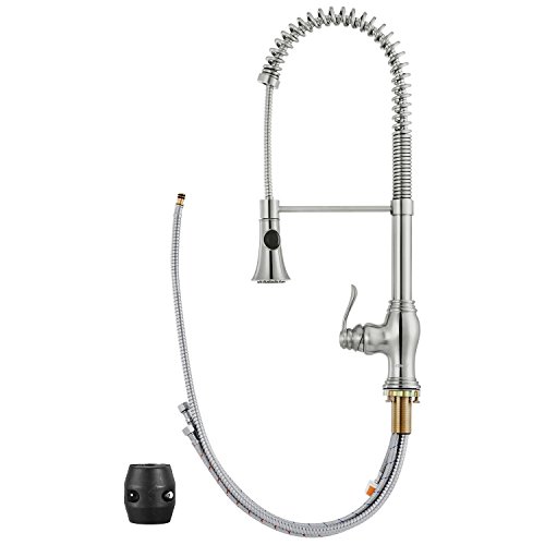 Solid brass kitchen faucet with retractable and 360-degree swivel spout expandable up to 32.5" lets you put the water where you need it; Our faucets use high quality ceramic valves, surviving 500000 times using without leakage and provide smoothly open-closed; Water Mode: stream/spray