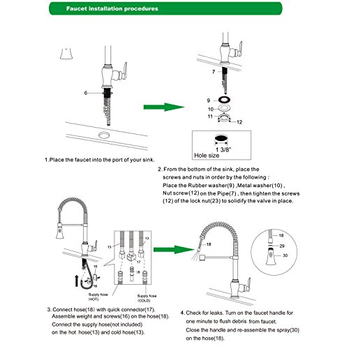 With elegance and convenience, the Ollieroo One-Handled Kitchen Faucet, certificated by cUPC, AB1953 and NSF is a must-have for your kitchen; Installation is quick and easy, fits sink with 1-Hole in size 1 3/8" or 3-Hole with 10" Hole Cover (Hole Cover is not included)