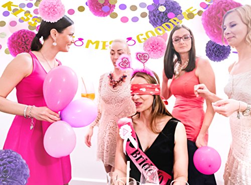 A Complete Bachelorette Party Decoration Kit Our pack contains top quality decorations with a unique banner designed by us in vibrant gold, purple and pinks color scheme. Add to Cart Now To Decorate Your Special Party! Here's What You Get: * KISS THE MISS GOODBYE Gold Glitter Banner with 3 Hot Pink Rings pre-strung on a 10 Foot Gold Cord ?????- Each letter is 5.1 inches tall * 1 Garland 6.5 Foot with 2 inch Circles of Glitter Gold, Purple and Hot Pink * 8 Pom Poms ?????- Each Includes White Ribbon for Hanging ?????- 3 Purple (1 x 14 Inch, 1 x 12 Inch and 1 x 10 Inch Diameter) ?????- 3 Hot Pink (1 x 14 Inch, 1 x 12 Inch and 1 x 10 Inch Diameter) ?????- 2 Pink (8 Inch Diameter) Please Note: Colors may vary from photos due to differences in color display on monitors and devices No matter how big your party is, we've got you covered. Buy as many kits as you need to cover your event space and we'll give you a discount for multiple purchases! Add to Cart Now To Start Your Once-in-a-Lifetime Celebration! 0 |