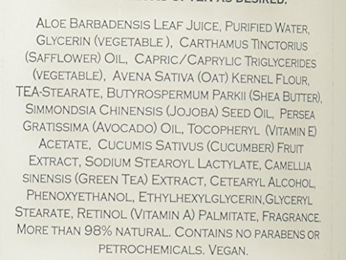 More than 98% natural. Made with aloe, shea butter, cucumber and colloidal oatmeal, known to soothe irritated and itchy skin with the added bonus of a protective barrier that helps retain moisture. Our honest and clean scent lifts the spirits and calms the senses. 16 oz. Dreamy smooth, this blend of milk, oatmeal, vanilla and vetiver is a tranquil comforting scent with stirring, yet sweet seductive notes that are controlled by their classic, romantic and powdery virtue.Feature