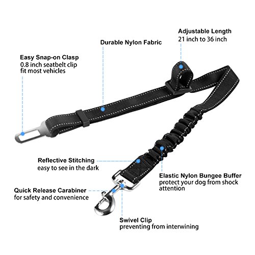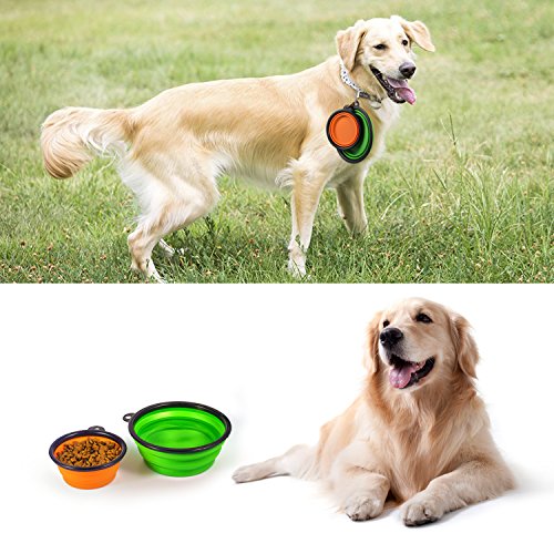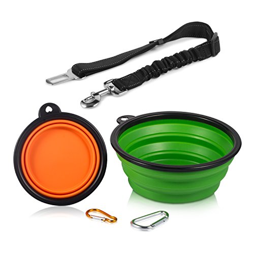 Perfect Protection for Your Pets We use the safety car seatbelt with flexible nylon fabric bungee to keep your pet comfortably restrained in the car while driving. When you brake suddenly, your pet can be prevented from flying forward and being injured. This important precaution is recommended by veterinarians and dog trainers. Perfect Travel Partners for Your Pets Compact and lightweight, our collapsible pet bowl is your best companion to keep your pet full and/or hydrated when you are on the go - whether you are traveling or going for a hike. Two bowls with two sizes, it is convenient to feed and drink. Note: -The seat belt is suitable for small/ medium pets, approximately 20-60 lbs. -Buy the seat belt with caution if you have a small dog which bites a lot. -Please measure the distance from your dog's clip to the latch bar to buy the right size. -Don't wash the bowl with hot water or expose to the sun. Specifics: Pet Seat Belt Material: 100% nylon, ABS Weight: 100g Length: 24*0.98 inches/ 61cm*2.5cm(L*W) Seatbelt Clip: 0.83 inches/ 2cm (Note: Please make sure that your car seat fits well before you purchased) Pet Bowl Material: Silicone Gel Weight: 70g Diameter: 5.1 * 2.1 inches/ 13*5.5 cm (Small) 6.89 * 2.56 inches/ 17.5*6.5 cm (Large) Package includes: 1 x Pet seatbelt 1 * Green collapsible pet bowl (Green) 1 * Orange collapsible pet bowl (Orange) 0 |