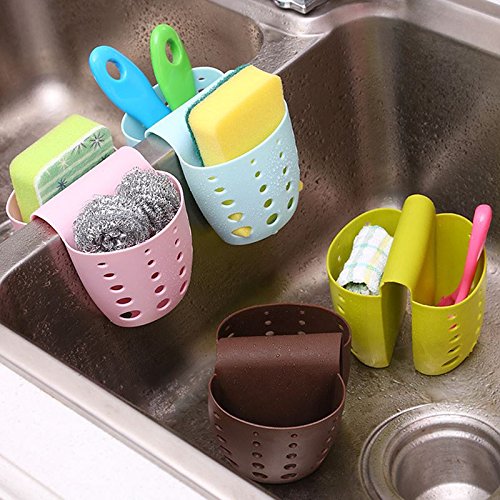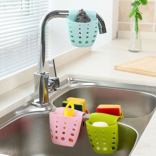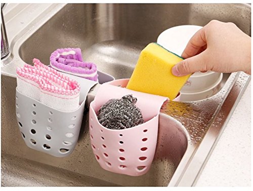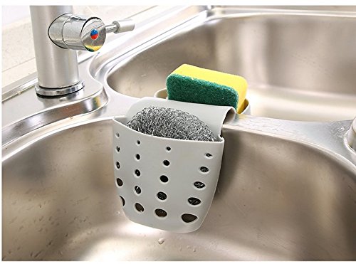 Grocery House Sponge Sink Holder, Hanging Silicone Kitchen Gadget Storage Organizer, Baskets Drain Bag (Gray)