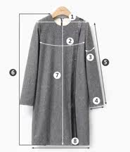 尺码 ①肩宽 ②胸围 ③上臂围 ④袖口围 ⑤袖长 ⑥前衣长 ⑦后中长 ⑧下摆围