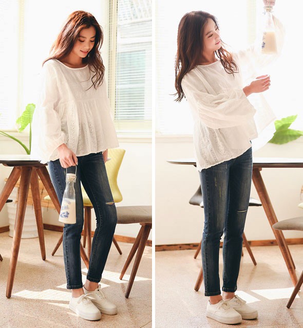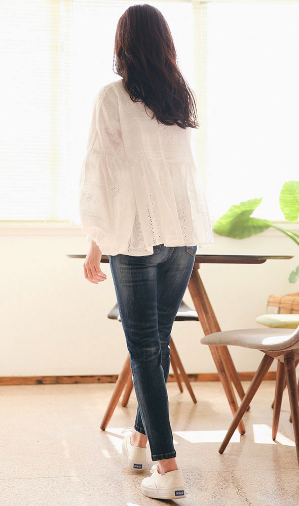 商品名□花柄刺繍レースパフスリーブ長袖チュニックHMS1038#ta290ta291【予約販売12月下旬より順次発送予定】 【送料無料】チュニック 花柄刺繍レース ゆるシルエット パフスリーブ