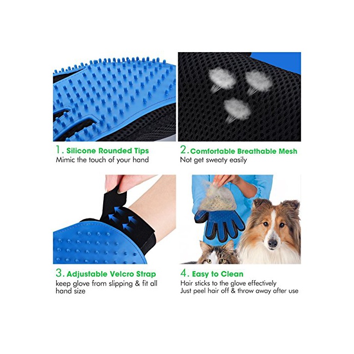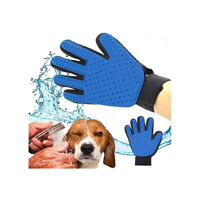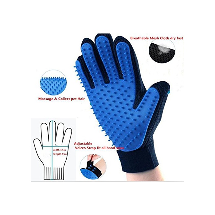 TopEU 애완동물 브러시 장갑 글로브 개와 고양이 대응 손질 탈모 오른손용 블루