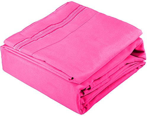 CGK UNLIMITED: Supreme blend of craftsmanship, our linens are designed to offer a unique and sophisticated sleeping experience. FULL SIZE PINK: This simply pink colored full size sheet set includes a 6 PC sheet package consisting of a Flat Sheet (88"x 99") Fitted Sheet (60"x 80") 4 Pillow Cases (9.5"x 30"). Extra deep pockets that fit 16 inch deep mattresses. BENEFITS: Microfiber is the newest bedding fabric and is distinctive for cooling comfort, it's strength and softness. It's been noticed to feel even softer than 1,000, 1500, and 1800 thread count sheets. These full sheets are hypoallergenic and very breathable. Fits all types of mattresses including air mattresses. Woven tightly, it guarantees extra strength and durability. This fabric has desirable characteristics such as stain resistance, breathing ability, wrinkle free, luxurious appearance and easy cleaning. Brushed microfiber products are also the best choices for allergy sufferers. With such benefits, it is no wonder brushed microfiber is most people's favorite when it comes to luxury bedding. These full sheets are on clearance and on sale for now!!Feature