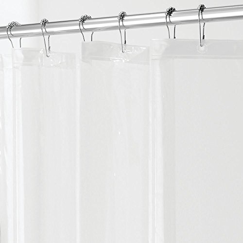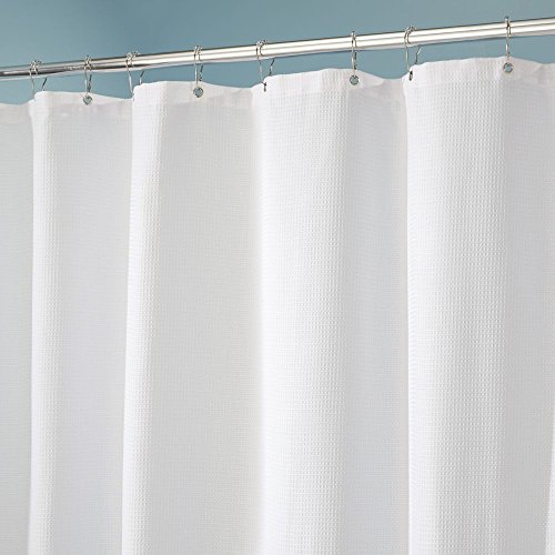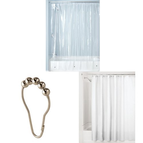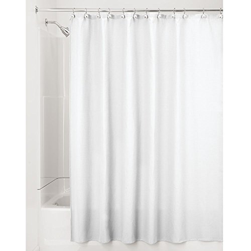 3-PIECE SET INCLUDES: A waffle-pattern fabric shower curtain, a mold/mildew-resistant clear liner and 12 stainless steel shower curtain rings