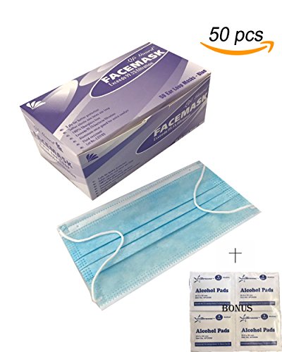50 PCS- (3-PLY) BLUE Disposable PREMIUM Earloop Face Masks - Medical Grade-- Bacterial Filtration Over 99.5%--- Surgical, Dental, Allergy, Cold...